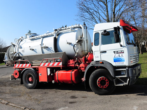 L.A.S dispose d'un camion à pompe muni d'une lance haute pression. Il est destiné au curage, au débouchage et au nettoyage des réseaux d'assainissement.